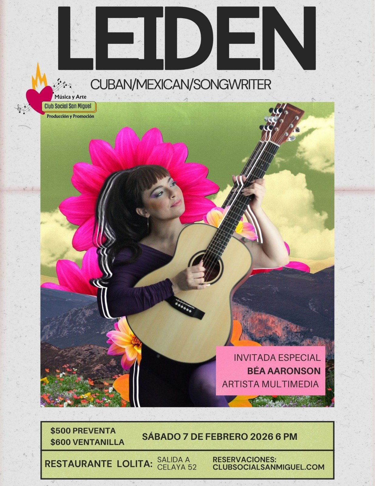 With five studio albums, a live DVD, and collaborations with artists such as Celso Piña, Aterciopelados, Torreblanca, and Vivir Quintana, Leiden has taken her music to stages across Europe and Latin America, including major festivals and venues such as Vive Latino, Cervantino, and the Lunario at the National Auditorium.