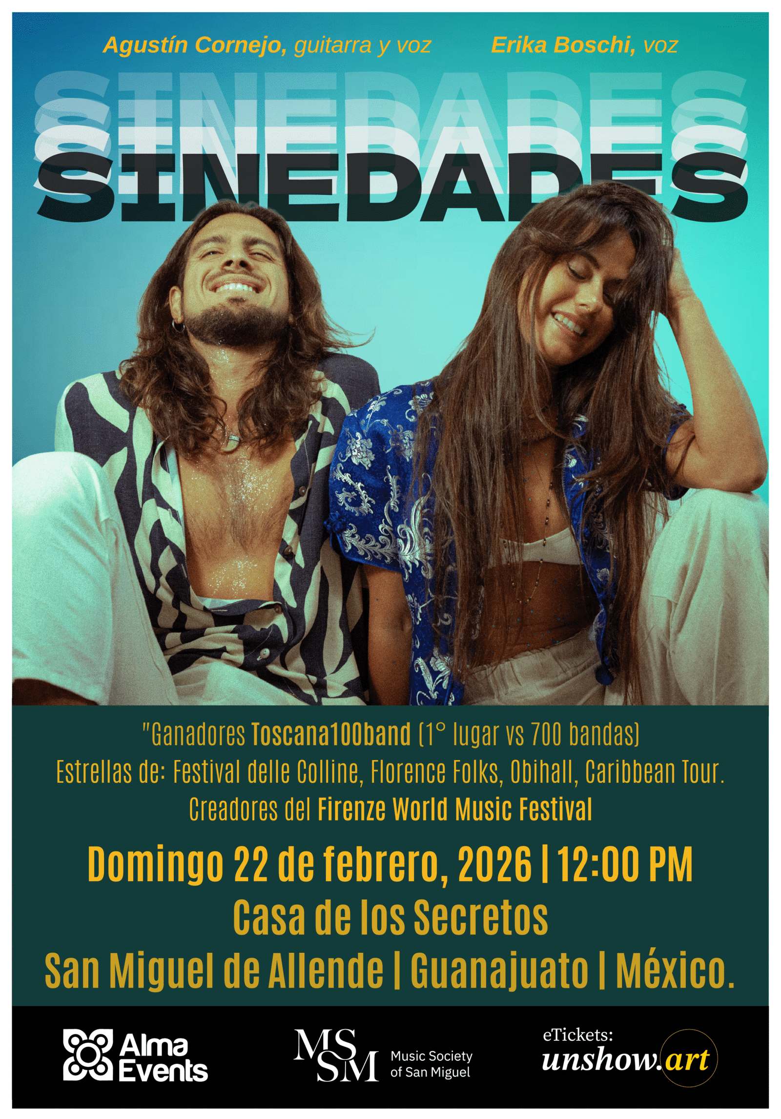 From Florence, Italy, comes Sinedades, the international duo formed by Italian singer Erika Boschi and Argentine guitarist Agustín Cornejo, creators of a musical universe that blends 1970s tropicalism, poetry, psychedelia, and Latin American song.