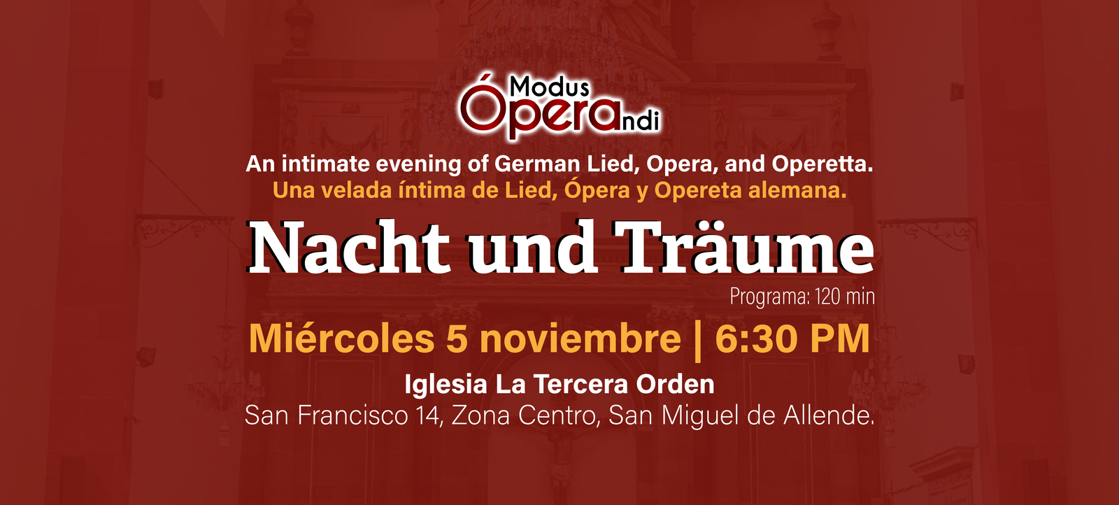 Modus Operandi presenta: Nacht und Träume Gala de Lied, Ópera y Opereta Alemana en San Miguel de Allende.
